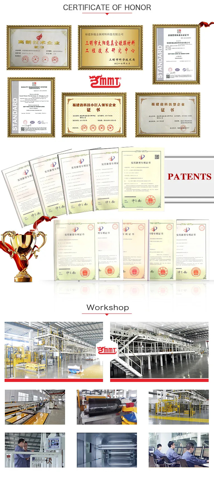 SMMT "G95" all layers are PVD coated and applied by the newest continuous air-to-air vacuum coating machine from Germany. Our technology gives the possibility to coat the ultra-thin stainless steel strips with highest efficiency, highest speed and high stability of product properties and quality among the whole length of the metal coil. (thin as 0.1mm).